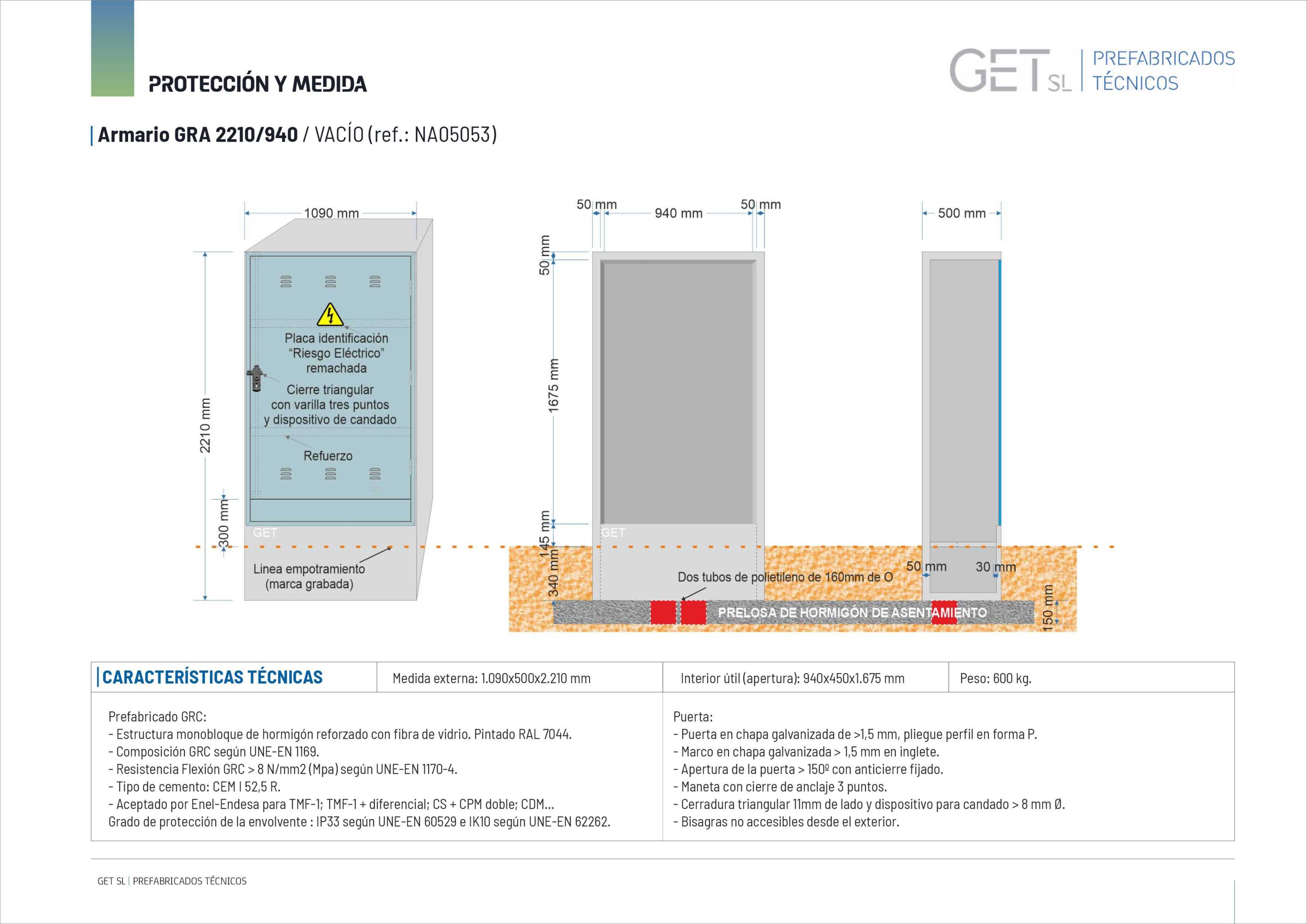 | NA05061-24 | Armario GRA 2210/940 TRI + Acometida TMF1/50A (34,60Kw) ICP |