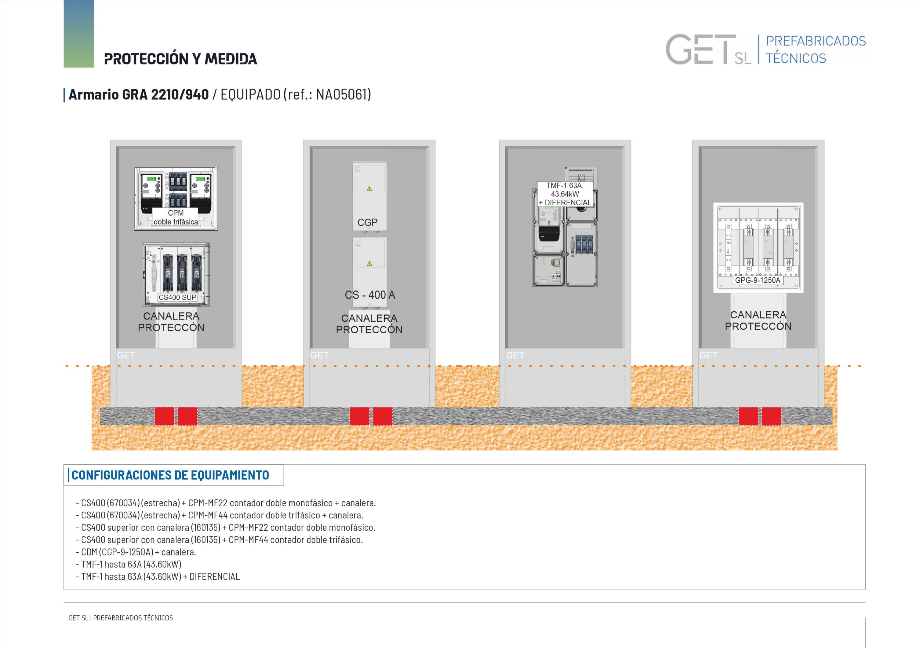 Conjunto de Protección y Medida TMF-1 de hasta 43,64 kW con o sin diferencial o cajas CS + CPM DOBLE de acuerdo con las especificaciones de FECSA ENDESA.