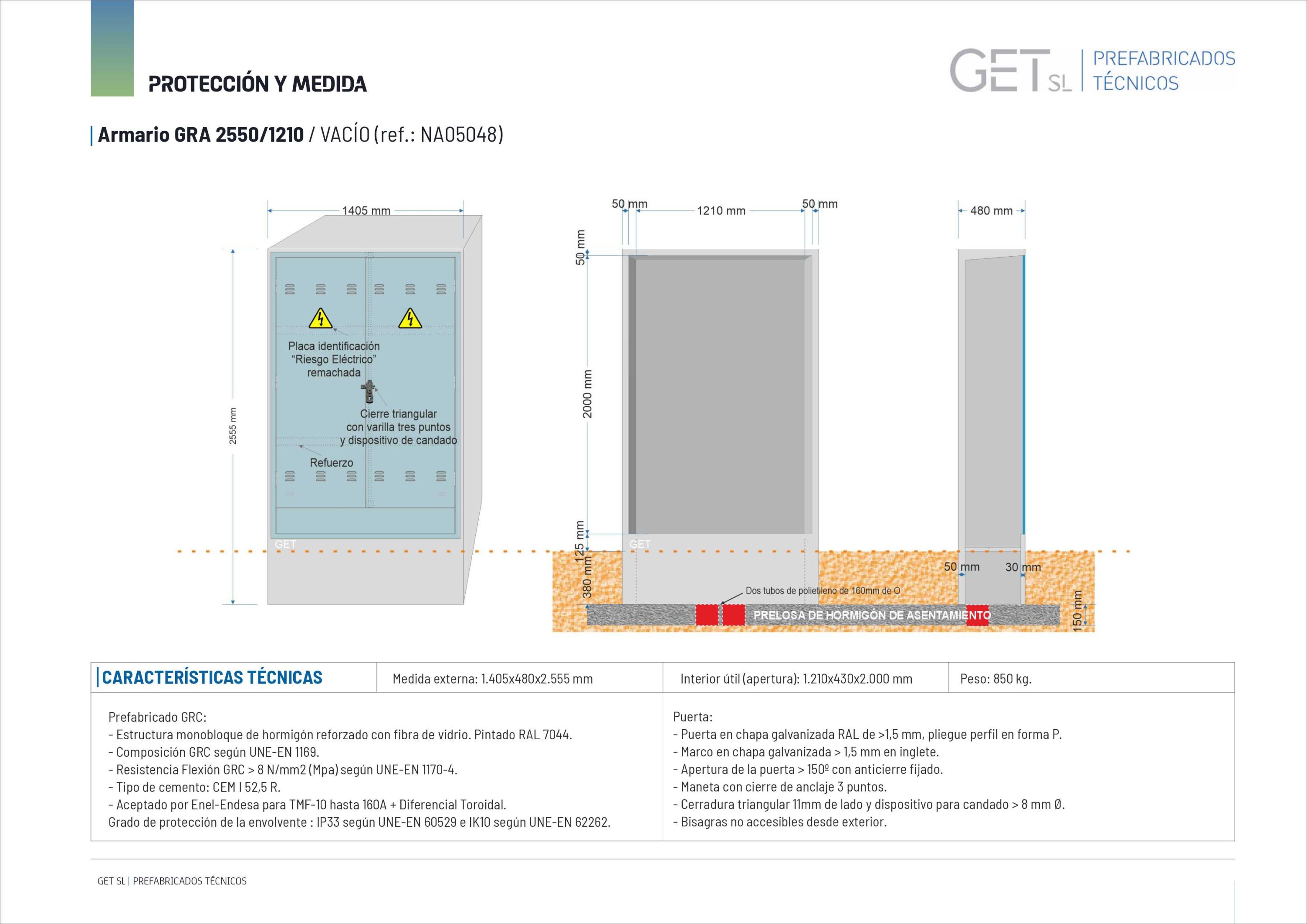 | NA05048 | Armario GRA 2550/1210 | 1405.x480x2.555 | 1.210x400x2.000 | JIS CFE de 3 puntos | 850Kg |