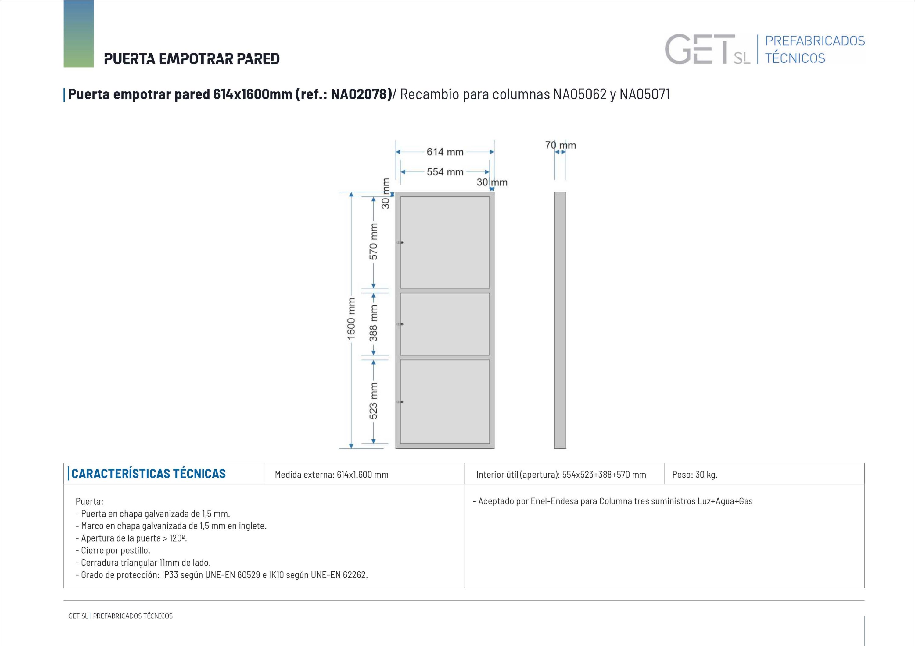 | NA02078 | MARCO con tres portezuelas con cerraduras para columnas LUZ + AGUA + GAS En ACERO GALVANIZADO |