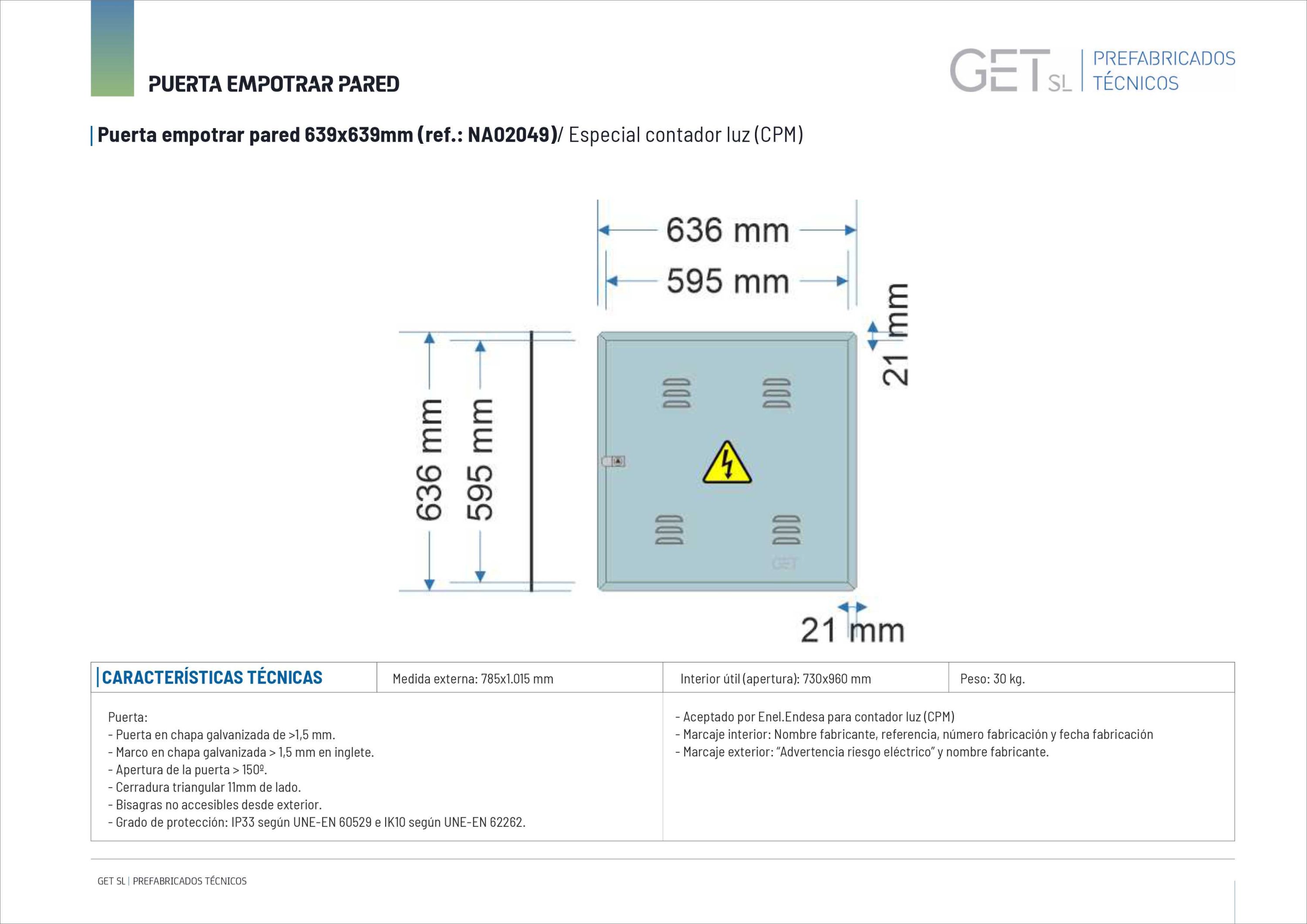 NA02049. Puerta empotrar pared/ nichos para contalor luz (medida 636x636mm)