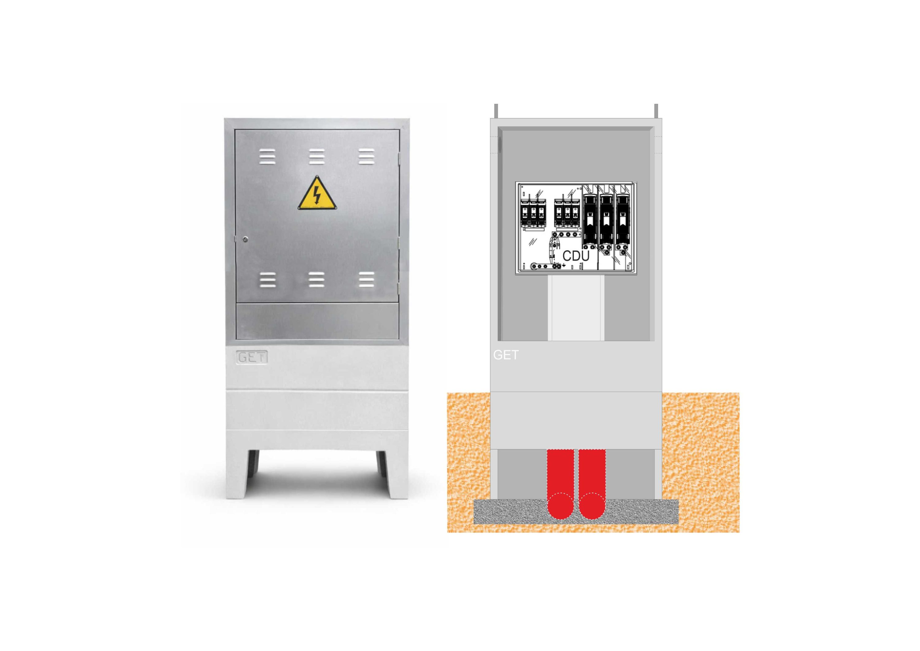 Armario prefabricado mono-bloque, con puerta metálica con capacidad para albergar una Caja de Distribución Urbana.