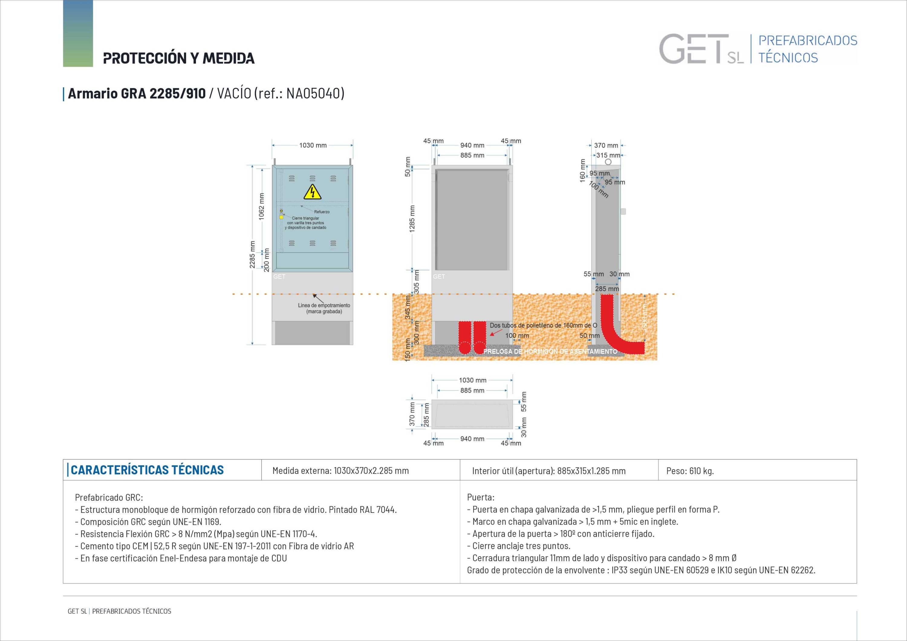 NA05040// NA05041-xx. Armario GRA-2285/910 (medida exterior 1.030x370x2.285mm) -Según nueva norma CNL009, próxima puesta en VIGOR-