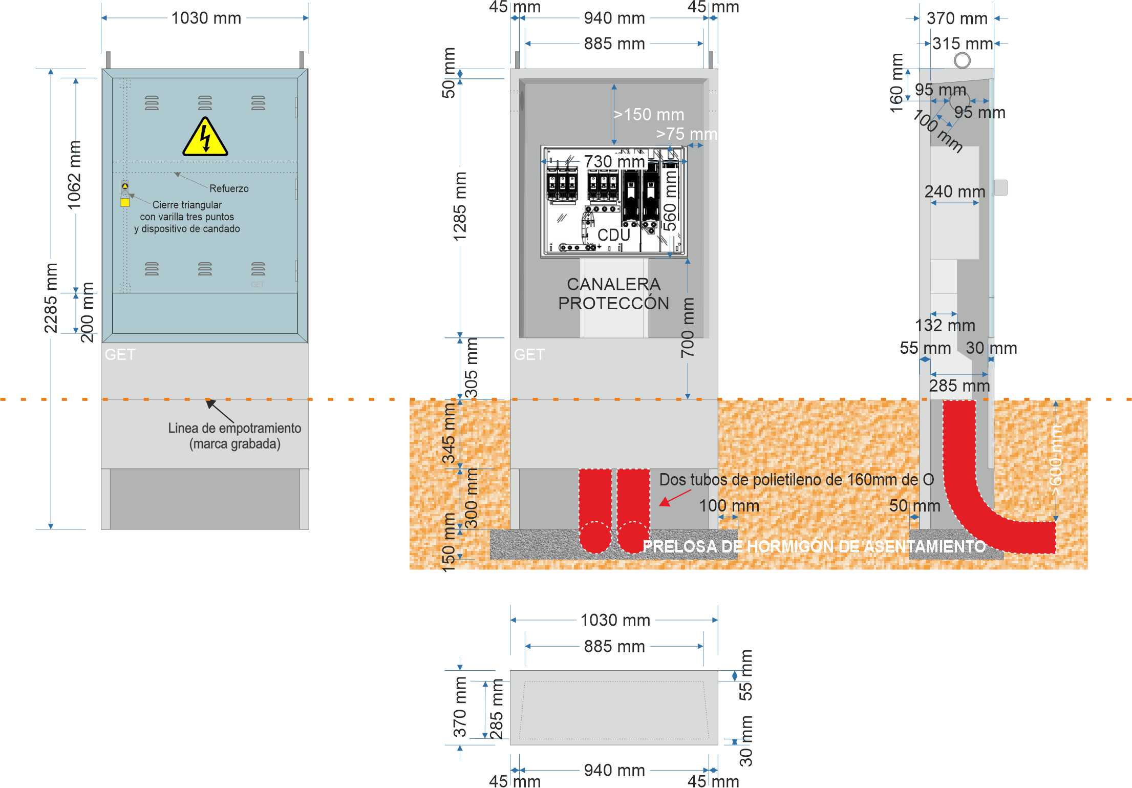- Acorde con propiedades mecánicas de la norma UNE-EN 61439-5 (apartado 10.2.101)