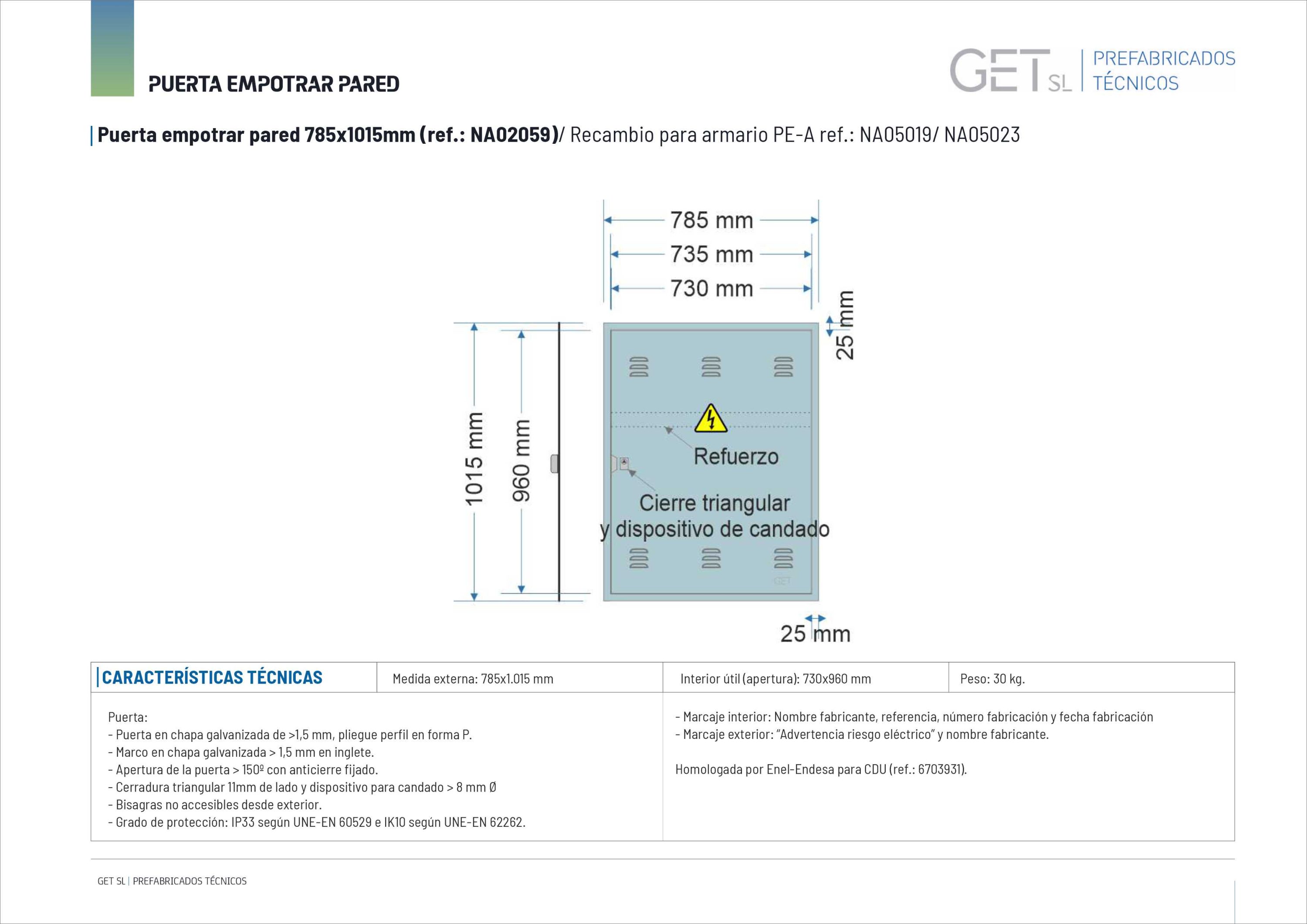 NA02059. Puerta empotrar en pared/ nichos FECSA ENDESA para DSPD o CGP/ Armario PE-A. (medida 785x1015mm)