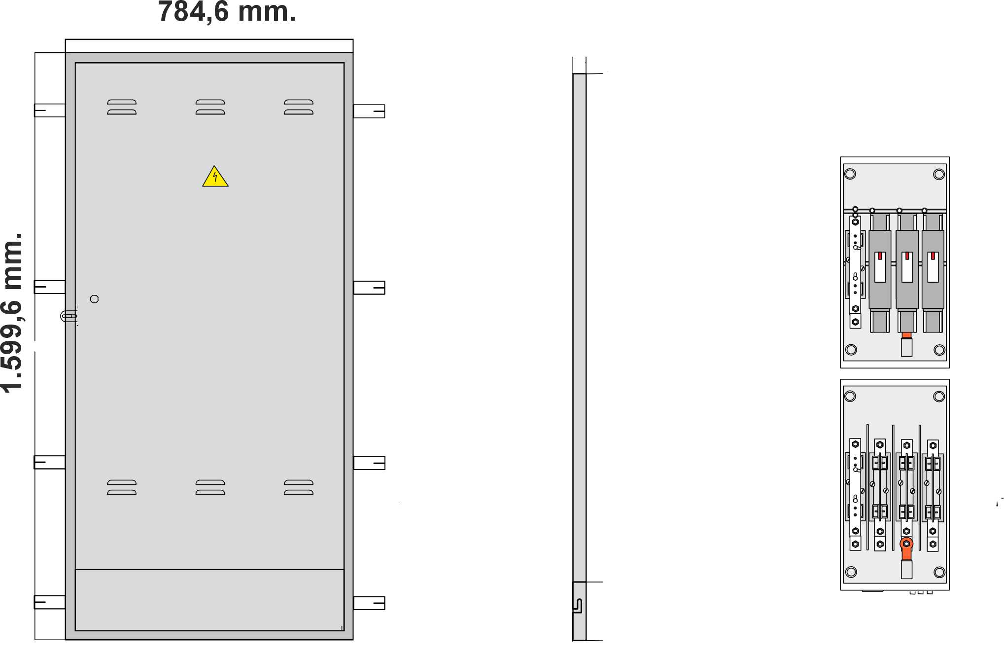 - Placa desmontable bajo la puerta de 164mm para acceso del personal y manipulación de cables.